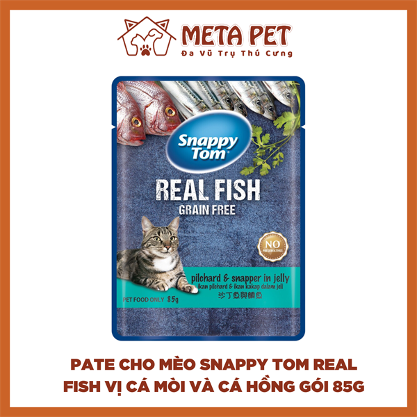 Pate cho mèo Snappy Tom Real Fish Pilchard & Snapper gói 85g