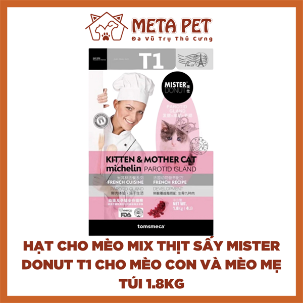 Hạt Cho Mèo Mix Thịt Sấy Mister Donut T1 Cho Mèo Mang Thai Và Mèo Con
