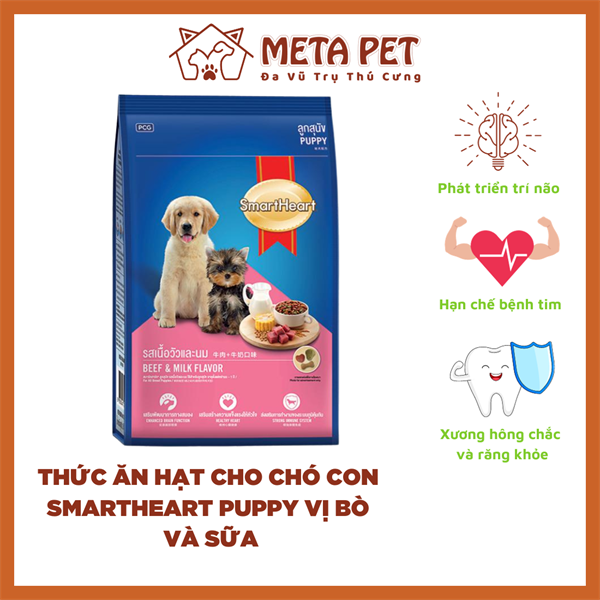 Thức ăn hạt cho chó con SMARTHEART - Vị Thịt Bò và Sữa - 440gr