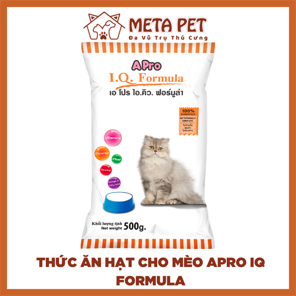 Thức ăn hạt Apro IQ Formula là dòng thực phẩm khô giàu dinh dưỡng, hỗ trợ phát triển trí não và thể chất toàn diện cho mèo. Công thức cân bằng giữa protein, vitamin, taurine và omega giúp mèo khỏe mạnh, tiêu hóa tốt và lông mượt.