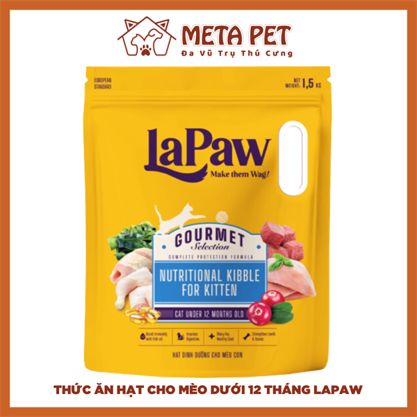 Thức ăn hạt cho mèo dưới 12 tháng Lapaw