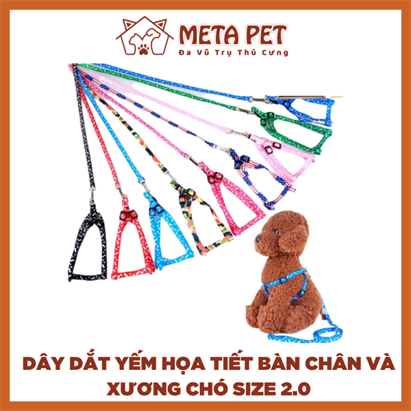 Dây dắt yếm họa tiết bàn chân và xương chó size 2.0